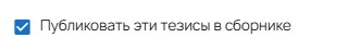 Если автор заинтересован в публикации тезисов, необходимо проставить галочку